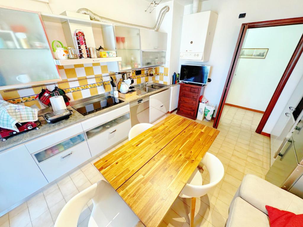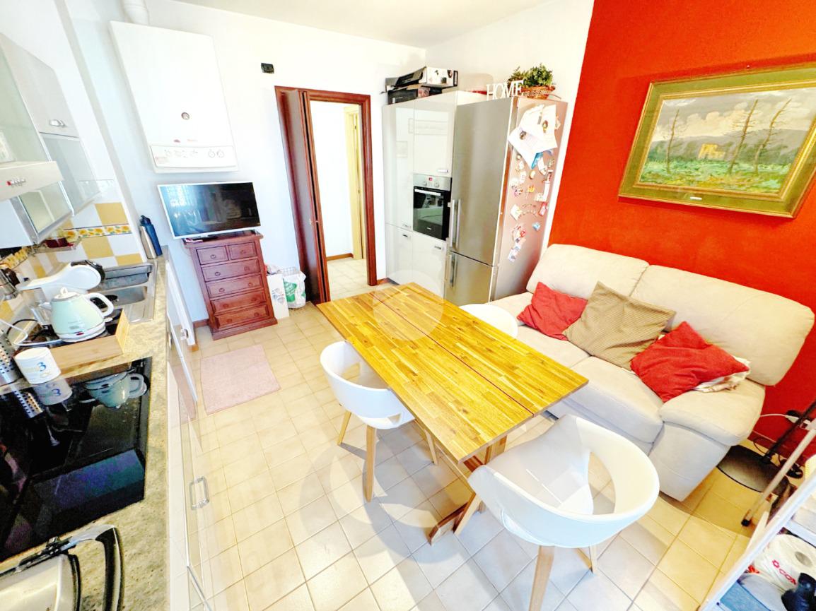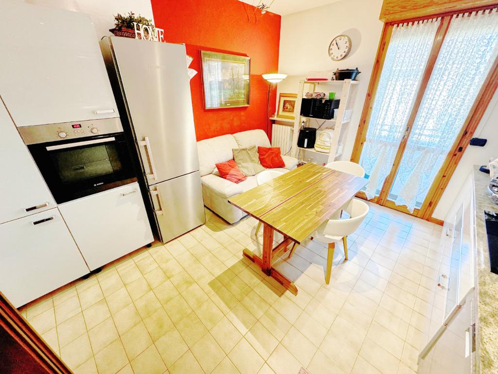 L’ingresso si apre direttamente sulla zona giorno, composta da un ampio soggiorno luminoso con accesso al balcone, condiviso anche con la cucina abitabile, perfetta per chi ama cucinare e vivere la casa in modo conviviale.