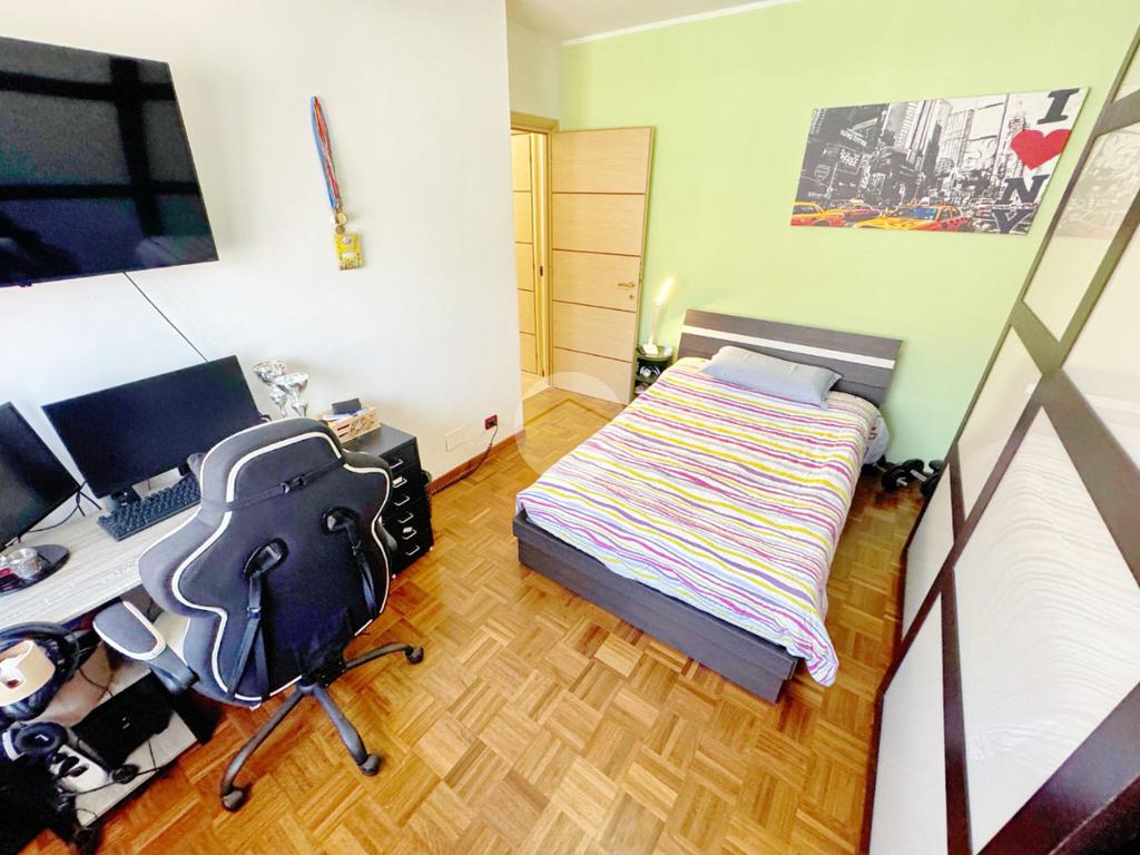 La zona notte comprende due camere da letto accoglienti e luminose e due bagni, di cui uno ad uso lavanderia, offrendo praticità e privacy.